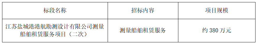 一、?江蘇鹽城港港航勘測設(shè)計有限公司?就江蘇鹽城港港航勘測設(shè)計有限公司測量船舶租賃服務(wù)項(xiàng)目(二次)進(jìn)行公開招標(biāo),誠邀合格的投標(biāo)人前來報名參加。