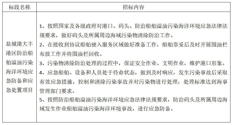 1、項目名稱:鹽城港大豐港區(qū)防治船舶溢油污染海洋環(huán)境應急防備和應急處置項目