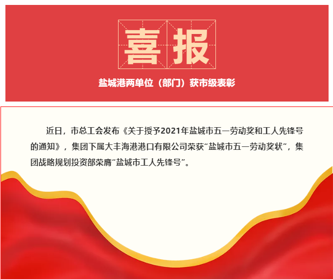 喜報!鹽城港兩單位(部門)獲市級表彰