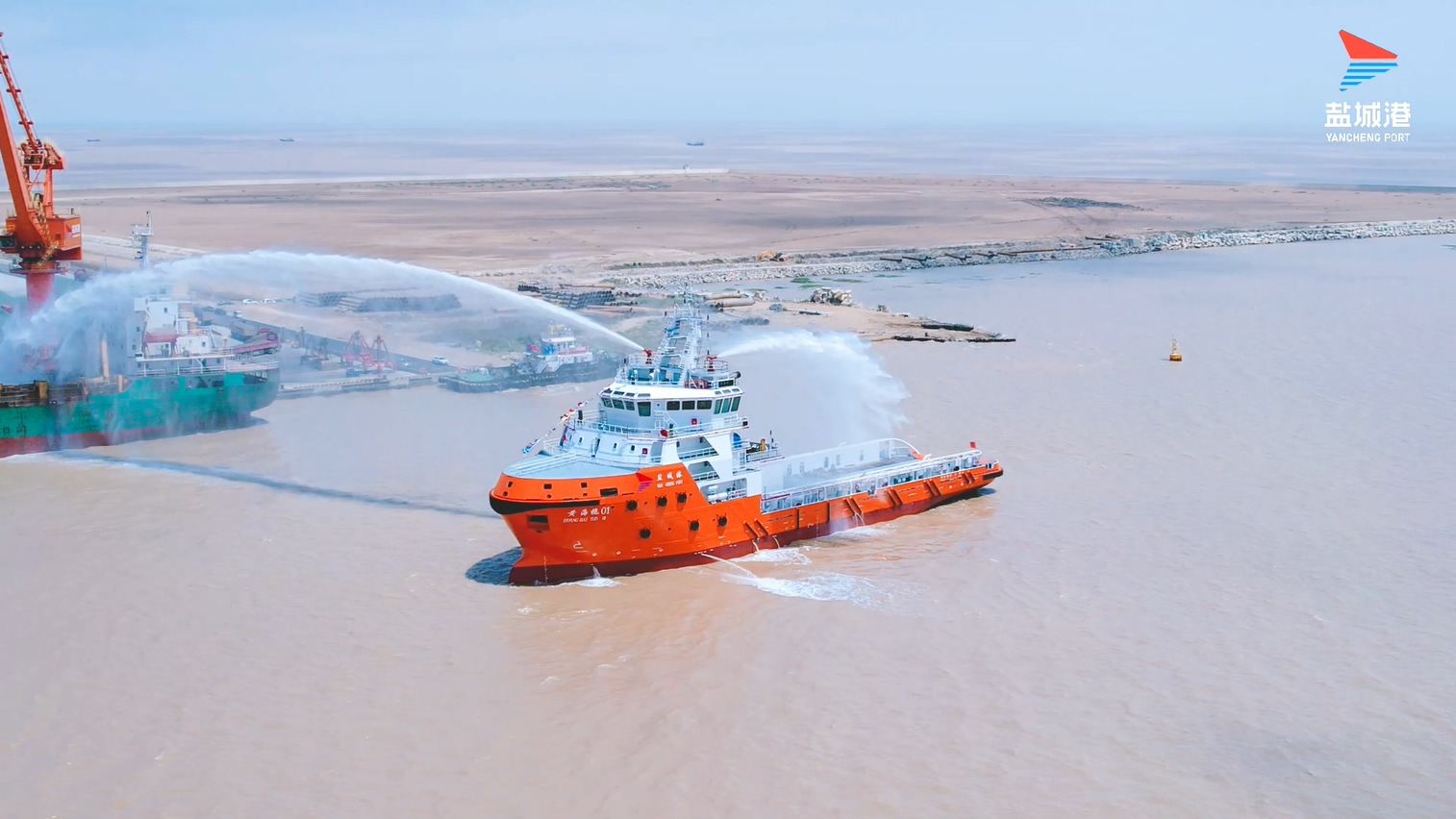 6月3日上午,鹽城港“黃海拖01”拖輪在隆重的“水門”儀式歡迎下,緩緩靠泊鹽城港濱海港區。這是這艘新購置船舶首次在鹽城港靠泊。
