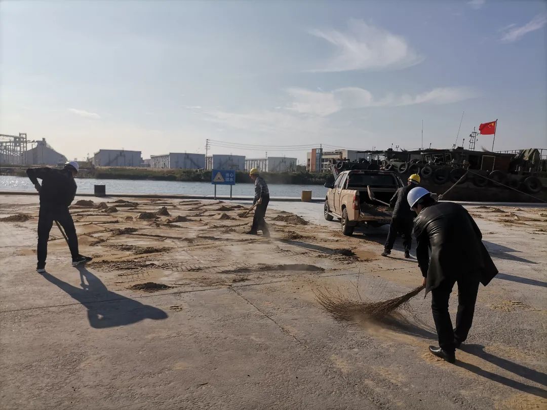 航運(集裝箱)集團在首次承接的黃砂集改散業(yè)務(wù)中。26個集裝箱小柜近800噸黃砂僅用時3.6小時就完成作業(yè),順利交貨,生產(chǎn)調(diào)度中心及運營操作部負責(zé)人全部在一線負責(zé)指揮調(diào)度,并在作業(yè)完成后,為了不影響場地的后續(xù)使用,帶頭扛起鐵鍬沖到現(xiàn)場清理,經(jīng)過近2小時的清理,3余噸的殘余沙石貨物全部清理完畢,不僅得到了貨主的贊揚,也向所有同事及兄弟單位展現(xiàn)了有困難一起上,見石頭齊心抬的團隊精神。
