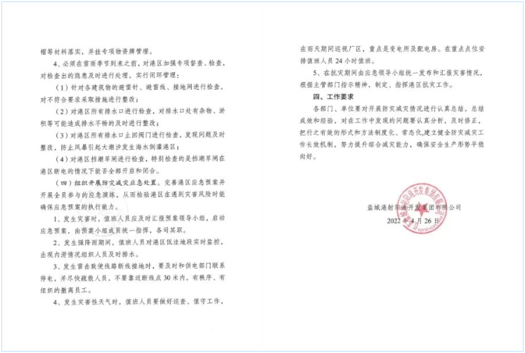 自射陽(yáng)縣新一輪新冠肺炎疫情爆發(fā)以來(lái),射陽(yáng)港區(qū)始終堅(jiān)持把保障人民群眾生命財(cái)產(chǎn)安全為首任,深入推進(jìn)各項(xiàng)防災(zāi)減災(zāi)能力建設(shè),明確目標(biāo)任務(wù),逐一抓好落實(shí)。防災(zāi)減災(zāi)工作不是一時(shí)一刻一朝一夕的事情,射陽(yáng)港區(qū)將根據(jù)自身實(shí)際,結(jié)合以往工作中遇到的突發(fā)情況,認(rèn)真總結(jié)經(jīng)驗(yàn),建立健全防災(zāi)減災(zāi)長(zhǎng)效機(jī)制,全面提升港區(qū)防災(zāi)減災(zāi)能力和員工的避災(zāi)自救能力,為確保射陽(yáng)港區(qū)完成“經(jīng)營(yíng)興航年”的各項(xiàng)工作目標(biāo)打下堅(jiān)實(shí)基礎(chǔ)。