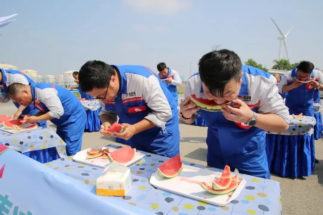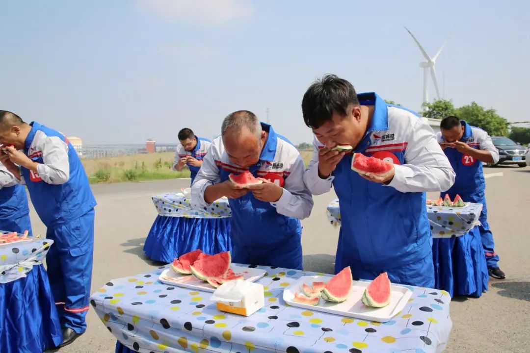 剛剛過去了小暑,大暑又匆忙到來,地表熱力值持續(xù)爆表,大豐港區(qū)一線職工不懼酷暑,堅(jiān)守一線,與炎熱打上了一場(chǎng)持久戰(zhàn)。在這炎熱的酷暑時(shí)節(jié),鹽城港大豐港區(qū)滿載著“一家人、在一起、手足情、過日子”的深情關(guān)愛,給一線的職工帶來了一場(chǎng)西瓜的狂歡之旅,在大豐港區(qū)石化碼頭舉行“瓜分甜蜜清涼一夏”吃西瓜比賽,和順國貿(mào)、中南匯、油品化工碼頭、成品油一線職工代表參賽。