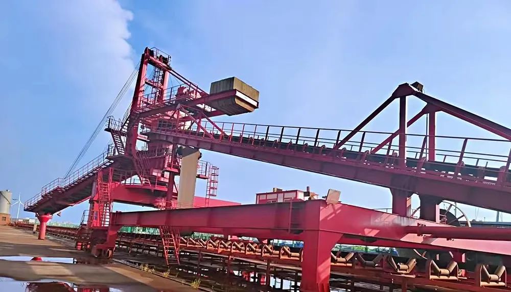 堆料機聳立在堆場之上,在貨物堆存和取料作業中起到承上啟下的關鍵作用,堆取料能力達2500t/h,可行走900米,作為全年不休、日夜奮戰的敬業戰士,能夠連續將貨物又快又均勻的轉運到皮帶機上,高效率、高質量完成各項生產任務。