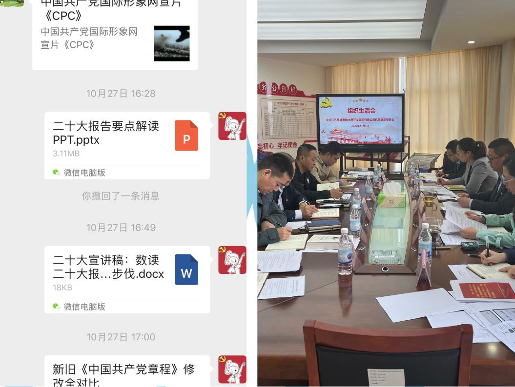 響水港區認真挑選黨的二十大精神相關的思維導圖、金句、文章等,在港區干部職工工作群內進行共享共學,同時通過“學習強國”、人民日報、集團公眾號等載體,持續深入學習黨的二十大精神相關社論和解讀。響水港區黨組織開展總支委員會、主題黨日、組織生活會集中學習黨的二十大精神,總支書記帶頭學,為黨員和干部職工講解二十大知識要點和熱點話題,提高黨員學習效率。同時通過召開組織生活會圍繞學習黨的二十大精神進行交流分享,黨員結合工作實際談認識、講體會、話感悟,在相互交流、碰撞借鑒中深化思想認識,剖析自身不足,掀起學習熱潮。