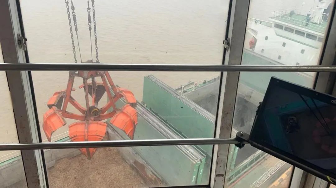 可以看到抓斗抓取貨物的場景