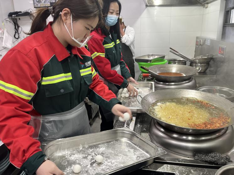 一碗碗熱騰騰的湯圓送到了忙碌在一線的員工手中,所有人吃在嘴里,甜在心里。