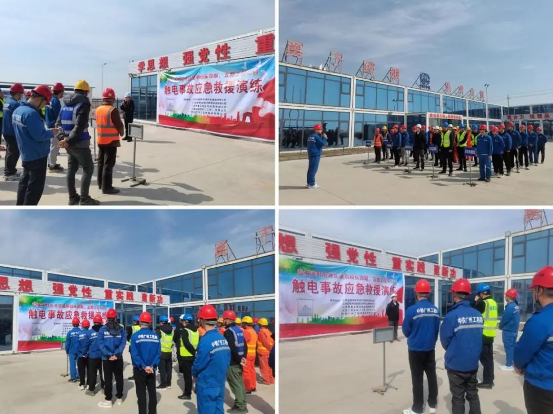 為進(jìn)一步推進(jìn)平安工地建設(shè),普及安全用電知識(shí),強(qiáng)化全員安全意識(shí),提高參建人員的應(yīng)急處置能力,射陽(yáng)港區(qū)聯(lián)合項(xiàng)目咨詢公司及射陽(yáng)港區(qū)通用碼頭四期、五期工程總承包單位開展觸電事故應(yīng)急救援演練活動(dòng)。