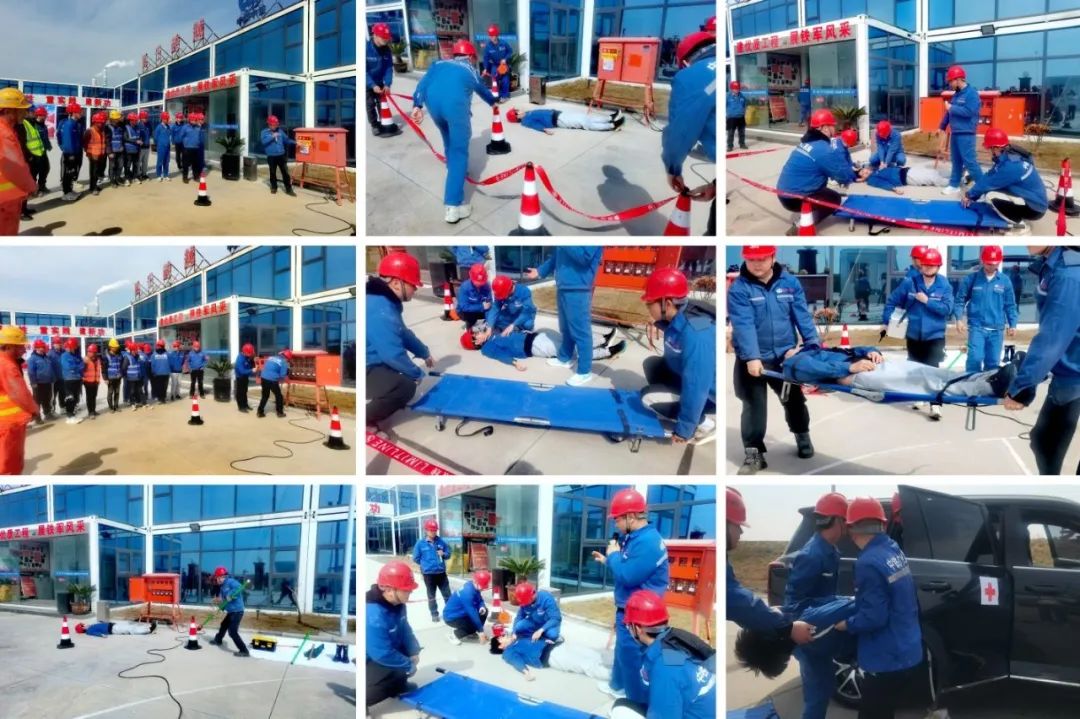 此次演練是針對(duì)現(xiàn)場(chǎng)工人作業(yè)時(shí)突發(fā)觸電情況進(jìn)行的模擬。演練內(nèi)容為事故發(fā)生、發(fā)現(xiàn)傷員、脫離帶電體、情況匯報(bào)、預(yù)案啟動(dòng)、傷員急救、人員轉(zhuǎn)運(yùn)等,并安排專職電工講解防觸電及觸電后急救知識(shí)。