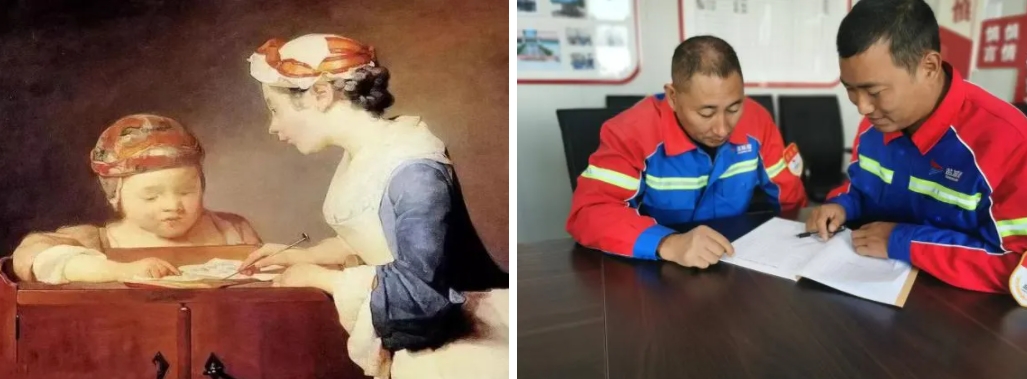 畫中老師耐心教導孩子