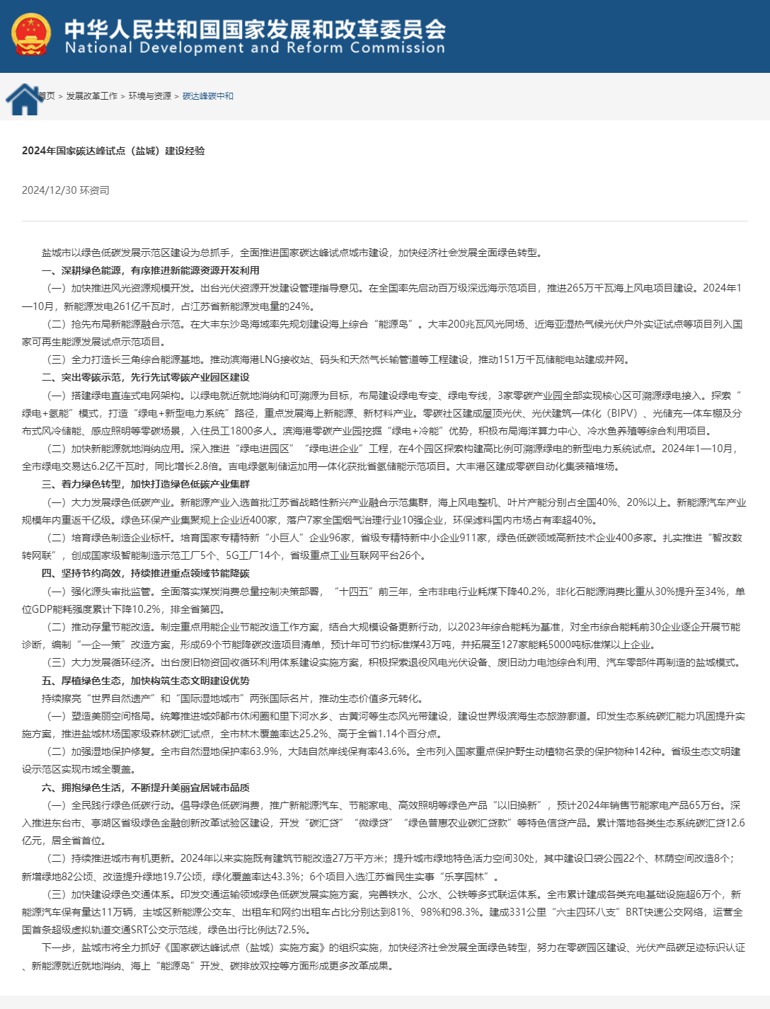 《國家碳達峰試點(鹽城)實施方案》