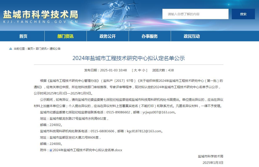 工程技術研究中心是企業研發機構的重要組成部分,被認定為鹽城市工程技術研究中心的企業將會在組織機構、運行機制、經費投入、人才培育、產學研合作等方面執行更高標準,有利于企業不斷提高自主創新能力、增強產業核心競爭力,進一步發揮在區域經濟發展的示范與促進作用。