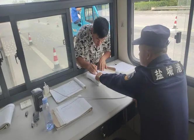 “你好,請(qǐng)將車停一下,登記進(jìn)港。”門(mén)崗保安員身子挺拔,手持醒目的紅色停車示意牌,維持港區(qū)入口處的進(jìn)出安全。他們目光堅(jiān)定,迅速核對(duì)駕駛員出示的證件與進(jìn)港通行證,指尖在登記簿上飛速記錄車牌、姓名、事由等信息,同時(shí)與職能部門(mén)實(shí)時(shí)核驗(yàn)身份。他們說(shuō),只要穿著保安服,我們就必須用嚴(yán)謹(jǐn)細(xì)致的工作狀態(tài),守牢港口的第一道安全防線。