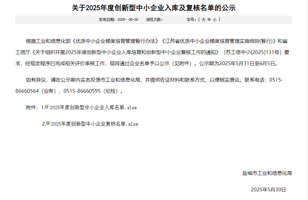 江蘇省創(chuàng)新型中小企業(yè)入庫名單