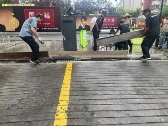 隨著防汛警報(bào)響起,物業(yè)應(yīng)急小組迅速集結(jié),攜帶防汛沙袋、防洪插板、抽水泵等物資設(shè)備趕赴西大門。各小組按照預(yù)案分工展開作業(yè):搶險(xiǎn)救援組兵分兩路,第一分隊(duì)使用專業(yè)工具快速搬運(yùn)并組裝鋁合金防洪插板,在車庫(kù)入口處構(gòu)筑起臨時(shí)擋水墻;第二分隊(duì)緊隨其后,用沙袋在插板后方疊筑“品”字形防洪墻,每層沙袋間用防水布加固,確保無(wú)滲漏縫隙。設(shè)備保障組同步啟動(dòng)移動(dòng)式抽水泵,對(duì)積水區(qū)域?qū)嵤?qiáng)排作業(yè),同時(shí)安排技術(shù)人員對(duì)故障排水系統(tǒng)進(jìn)行緊急搶修。全程通過(guò)智能廣播系統(tǒng)循環(huán)播放疏散提示,引導(dǎo)周邊居民有序撤離至臨時(shí)安置點(diǎn)。