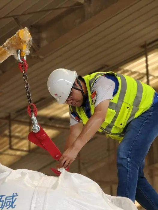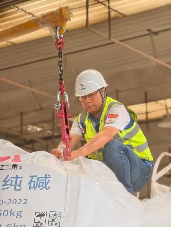 純堿是一種極其重要的工業(yè)原料,廣泛應用于玻璃、輕紡、制鹽和冶金等項目,被譽為“化工之母”。為保障純堿業(yè)務首航順利,響水港區(qū)精心籌備,組織生產(chǎn)、倉儲多部門聯(lián)動,細化作業(yè)環(huán)節(jié),克服酷暑考驗,倉儲組長王玨更是24小時駐守生產(chǎn)一線,工裝被汗水反復浸透,但依然堅守。
