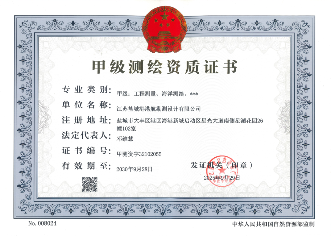 近日,江蘇省自然資源廳正式發布測繪資質審批結果公告,港灣集團勘測設計公司順利通過資質審核,成功取得海洋測繪、工程測量兩個專業類別的甲級測繪資質,標志著公司正式躋身測繪地理信息領域的“第一梯隊”,為服務區域經濟社會發展提供了更為強勁的技術支撐。