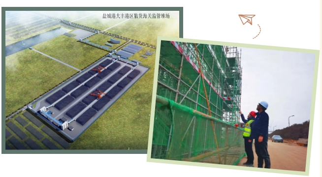 在鹽城港大豐港區海關監管堆場項目現場,施工圍擋的綠色防護網與剛冒頭的柳芽相互映襯。項目管理人員在正在澆筑的混凝土廊道中來回忙碌,他們仔細排查防護網節點的緊固情況,認真檢查邊界的密封狀態,確保防護網沒有破損、不存在任何安全隱患,全力為項目安全生產筑牢堅實防線。