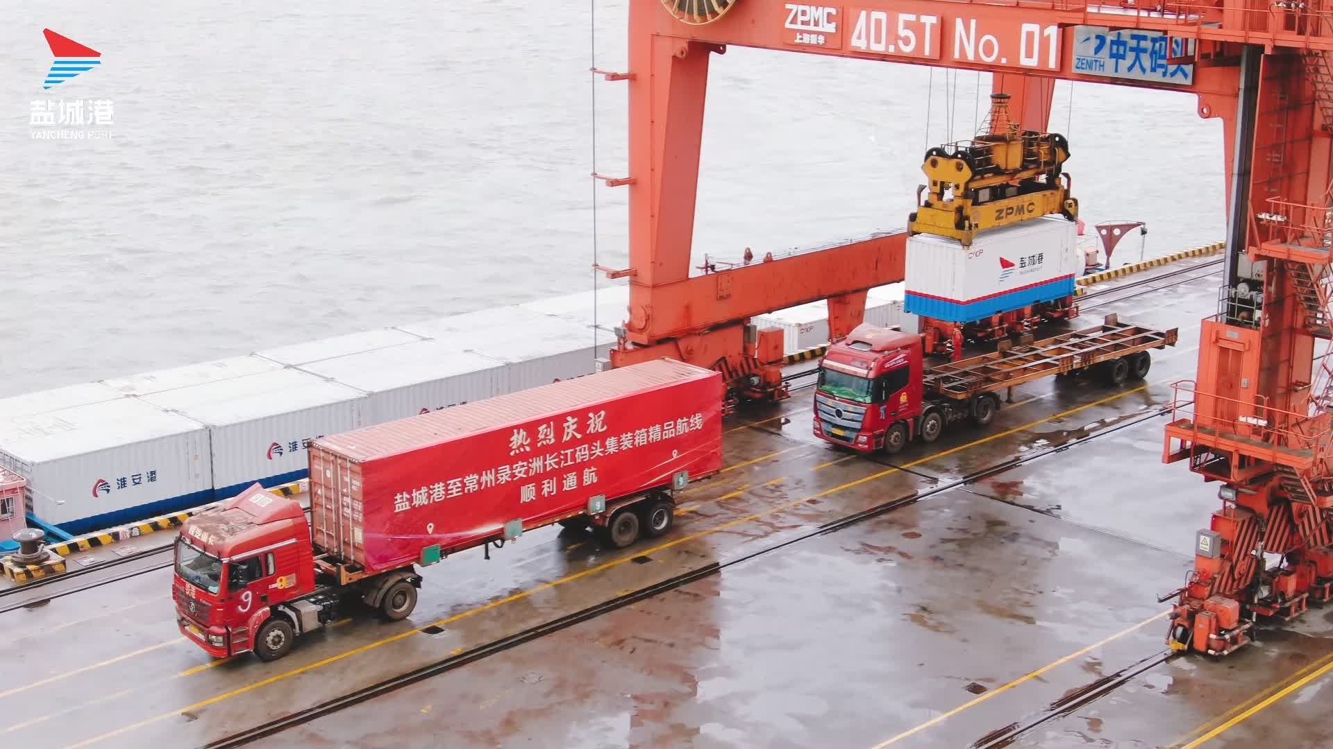 再添新航線!鹽城港至常州錄安洲長江碼頭內河集裝箱精品航線正式通航