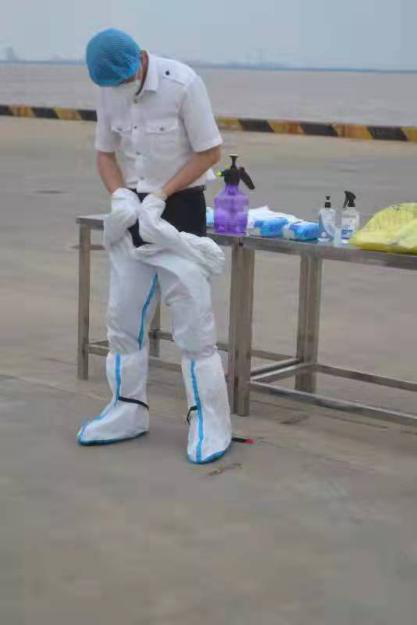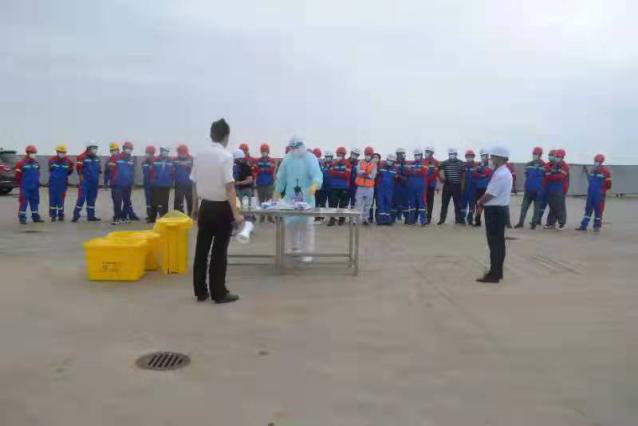 活動中,黨總支書記韋林和作培訓動員,鹽城海關駐大豐港辦事處領導對港口作業(yè)人員宣講了常態(tài)化防疫管理對港口作業(yè)的重要性,專班工作人員就規(guī)范穿脫防護服、醫(yī)療廢棄物垃圾袋消毒和鵝勁式包扎流程進行了示范操作。