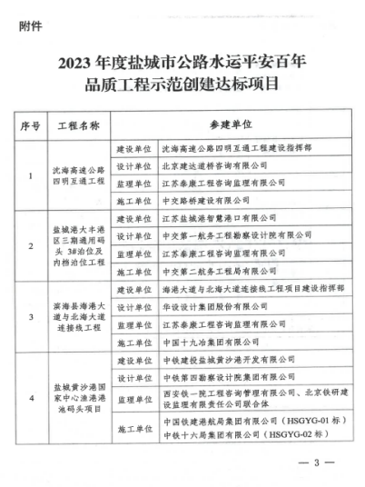 近日,鹽城市交通運輸局發(fā)布2023年度鹽城市公路水運平安百年品質(zhì)工程創(chuàng)建示范達(dá)標(biāo)項目的通知,大豐港區(qū)通用碼頭3#泊位項目成功當(dāng)選。