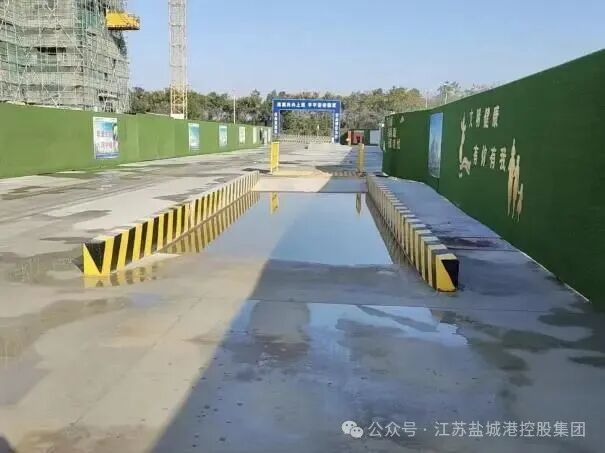 工程車駛?cè)腴L(zhǎng)方形水池,兩側(cè)黃黑警示樁如衛(wèi)士列隊(duì)。這里是車輛的“美顏艙”!車輪裹挾的泥土被水流循環(huán)沖刷,污水沉淀后重復(fù)利用,確保每一輛出場(chǎng)車輛都“凈身出戶”,絕不讓泥漿污染城市道路。圍擋上“文明健康 有你有我”的標(biāo)語(yǔ),正是它的環(huán)保宣言。